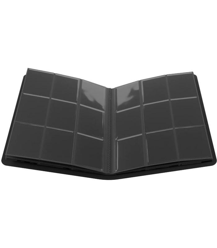 Tiene 20 páginas con 18 bolsillos de carga lateral cada una, para una capacidad total de 360 cartas (incluso de doble funda). Una correa elástica extra ancha con costuras reforzadas cierra este álbum de forma segura.