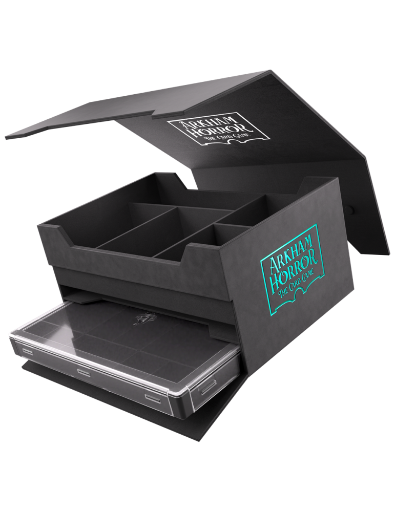 Arkham Horror: Game Night Chest, diseñada específicamente para jugadores apasionados, ofrece amplio espacio para mazos de Investigador, más de 500 cartas enfundadas, la Bolsa de fichas y mucho más