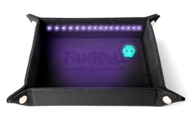 Lleva tus partidas al siguiente nivel con la bandeja de dados Fanroll Blacklight Black Shadowlight, diseñada para destacar con un espectacular efecto reactivo a luz ultravioleta (UV).
