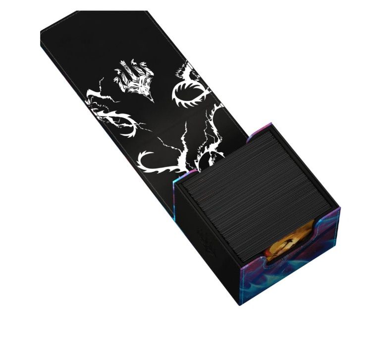 Diseñada para contener 133 cartas de doble funda (160 de sola funda), la superficie duradera de Xenoskin del Sidewinder 133+ está decorada con ilustraciones con licencia oficial del set Tarkir: Tormenta Dracónica de Magic: The Gathering.