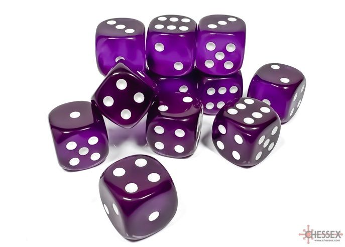 Dados Chessex Gemini 16mm D6 Translucent Pips Dice (12u) Purple/White