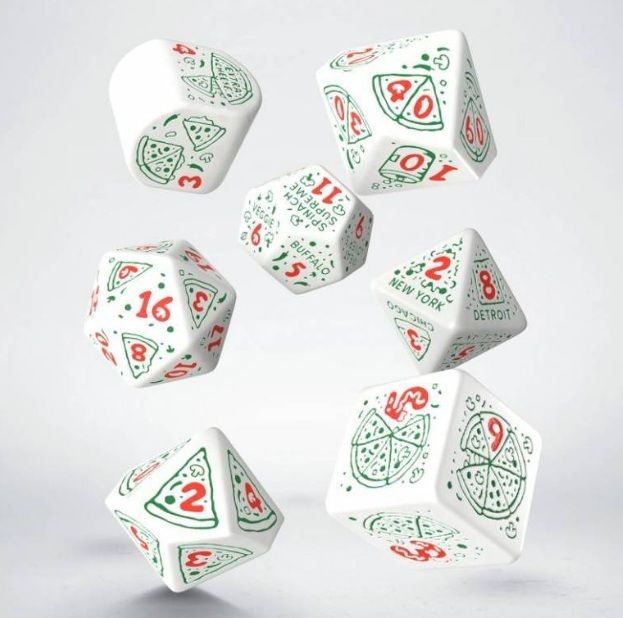 ¡Un capricho picante que viene en camino! ¡El aperitivo más popular en las sesiones de rol recibe un homenaje! El set de dados de pizza: Pepperoni, inspirado en este plato clásico con un toque picante, aporta un toque delicioso al mundo de los juegos de rol.