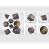 Este juego contiene 8 piezas: D4, D6, D8, D10, D00, D12, D20 y D2 representados como una moneda de metal.