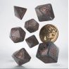 Q WORKSHOP presenta el juego de dados The Witcher. Geralt - Precio de la Neutralidad. El tema de color para los dados en este juego es gris brillante (infundido con polvo de purpurina) con grabados pintados en cobre.