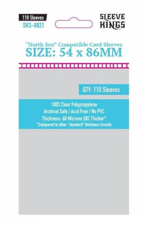 Paquete de 110 fundas Sleeve Kings North Sea, de tamaño 54x86 mm. Libre de ácidos, sin PVC.