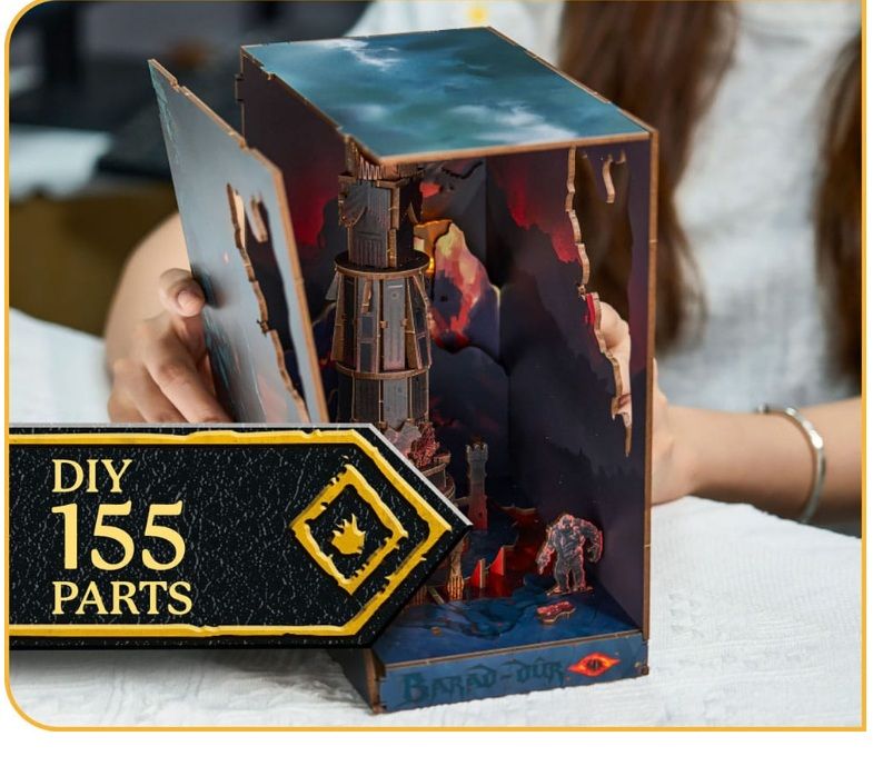Sujeta libros de la emblemática película de El Señor de los Anillos con iluminación LED ideal para tu estantería.