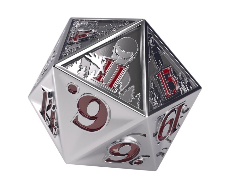 Gamegenic, en colaboración con Die Hard Dice, presenta este accesorio imprescindible para cualquier fan de la serie Stranger Things™. 10 de las caras de este dado único muestran 2 escenas repujadas exquisitamente del Mundo del revés, la dimensión alternativa misteriosa de la serie. Además, la cara 1 muestra la puerta entre las 2 dimensiones mientras que la cara 20 muestra al demonio del club del Fuego Infernal. Lo números están grabados en color rojo oscuro translúcido. Tanto los números como las escenas grabadas en los dados encajan perfectamente con la atmósfera única de Stranger Things™.