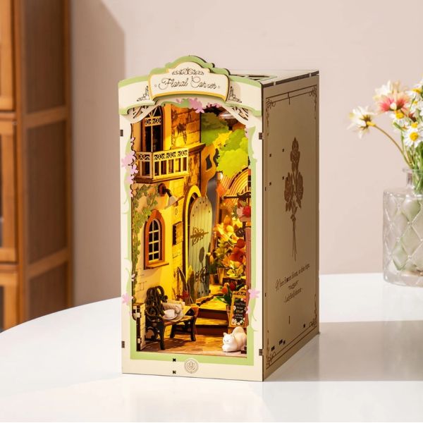 Maqueta para sujetar libros Sakura Wine Alley. Móntalos tu mismo uniendo las piezas de madera de alta calidad precortadas y prepintadas. Ventanas a un mundo mágico en tu propia estantería.