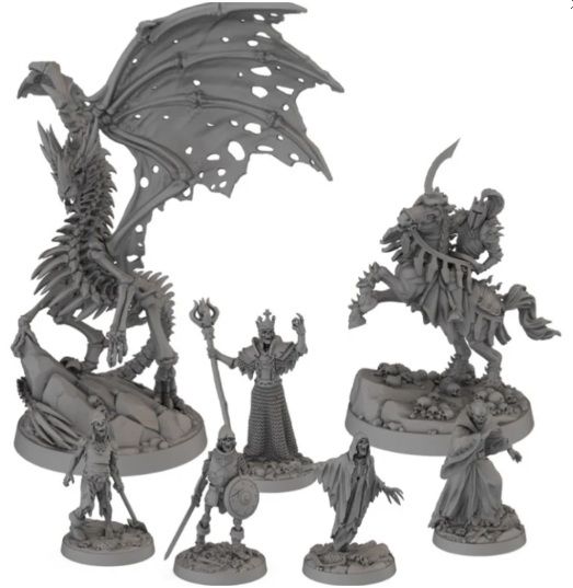 Introduce en tus partidas estos 3 conjuntos de miniaturas de 7 unidades para las facciones del juego base Castillo, Necrópolis y Mazmorra.