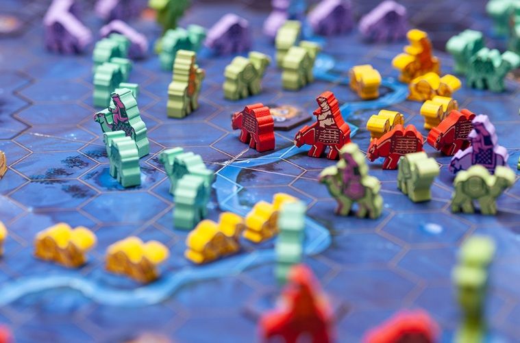 Los jugadores compiten por construir caravanas de camellos de colores vivos, conectando abrevaderos, reclamando oasis y bloqueando a sus oponentes para asegurarse territorios valiosos.