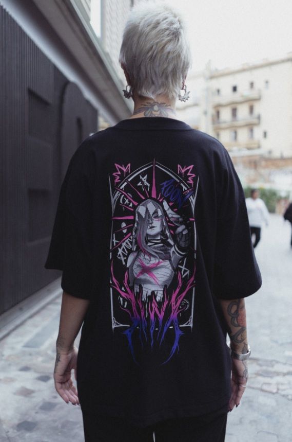 Camiseta negra de Camichan diseño JINX inspirada en el personaje del League of... Ver más