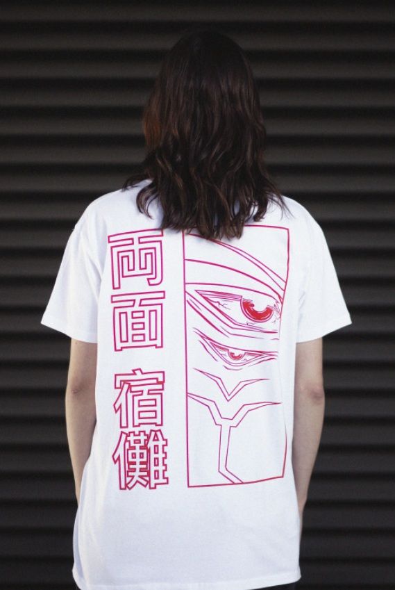 Camiseta blanca de Camichan diseño NOROI inspirado en el personaje Sukuna del... Ver más
