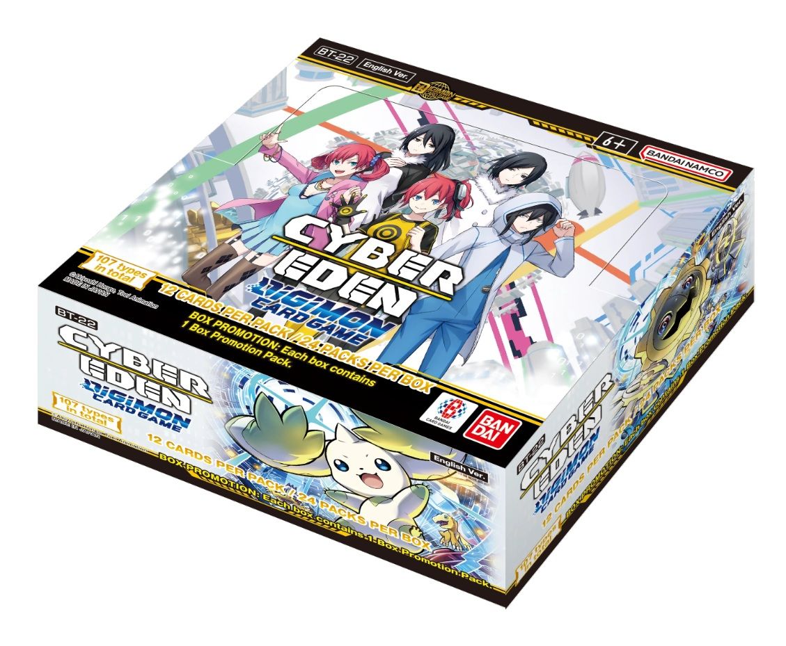 Caja de 24 sobres de la colección Cyber Eden BT22 del juego de cartas de Digimon. En inglés.