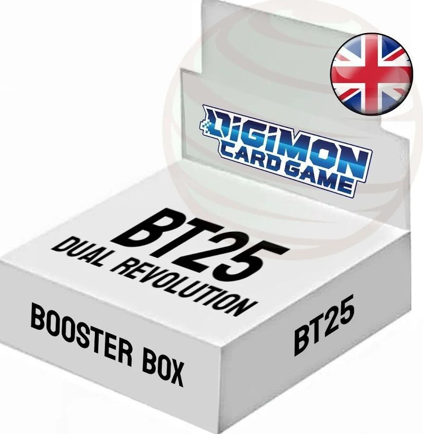 Caja Dual Revolution BT-25 del juego de cartas de Digimon. En inglés.