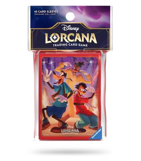 Paquete de 65 fundas estándar de 63x88 mm con acabado mate, ideales para proteger cartas de Disney Lorcana TCG. Diseño temático de Goof Troop, perfecto para coleccionistas y jugadores