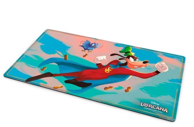 Tapete de juego de gran tamaño con ilustraciones de Lorcana Wilds Unknown Goofy.