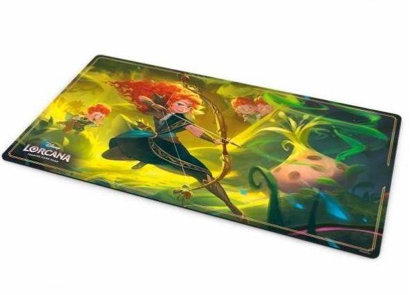 Tapete de juego de gran tamaño con ilustraciones de Lorcana Wilds Unknown Mérida.