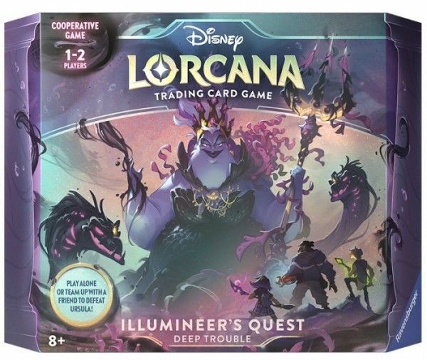 Los jugadores pueden formar equipo con sus amigos o emprender una misión en solitario para derrotar a Úrsula y salvar a Lorcana en Illumineer’s Quest “Deep Trouble”, el primer juego cooperativo de Disney Lorcana TCG. ver menos