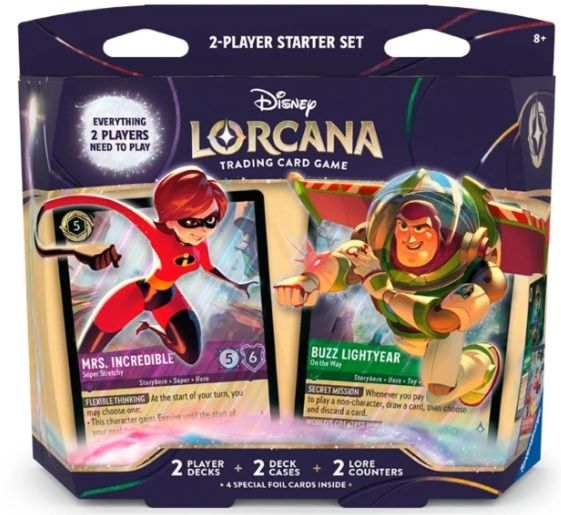 Adéntrate en el mundo de Disney Lorcana Trading Card Game con este set de inicio para 2 jugadores de la expansión Wilds Unknown. Un pack perfecto para empezar a jugar o para ampliar tu colección del popular juego de cartas de Disney.