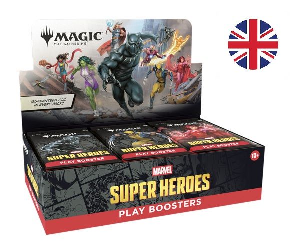 SALIDA DEL PRODUCTO: 26 DE JUNIO DEL 2026. Caja de 30 sobres Play booster de 14 cartas de la expansión Marvel Super Heroes en inglés. ver menos