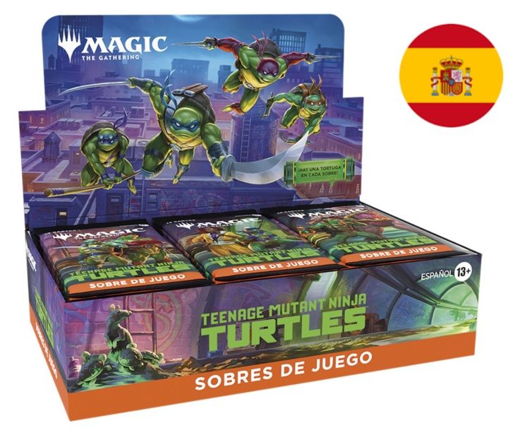 ¡Las tortugas ninja se estrenan en el campo de batalla para darle una dosis cuádruple de caos mutante a Magic: The Gathering! Colecciona, construye y combate con una increíble plantilla de aliados y enemigos que llevan más de cuatro décadas cosechando una tremenda afición tortuguil. ¡Dales cien vueltas a los matones de Shredder con la nueva mecánica de infiltración y potencia la fuerza de tu equipo con fichas de Mutágeno para triunfar con los verdaderos héroes de Nueva York!