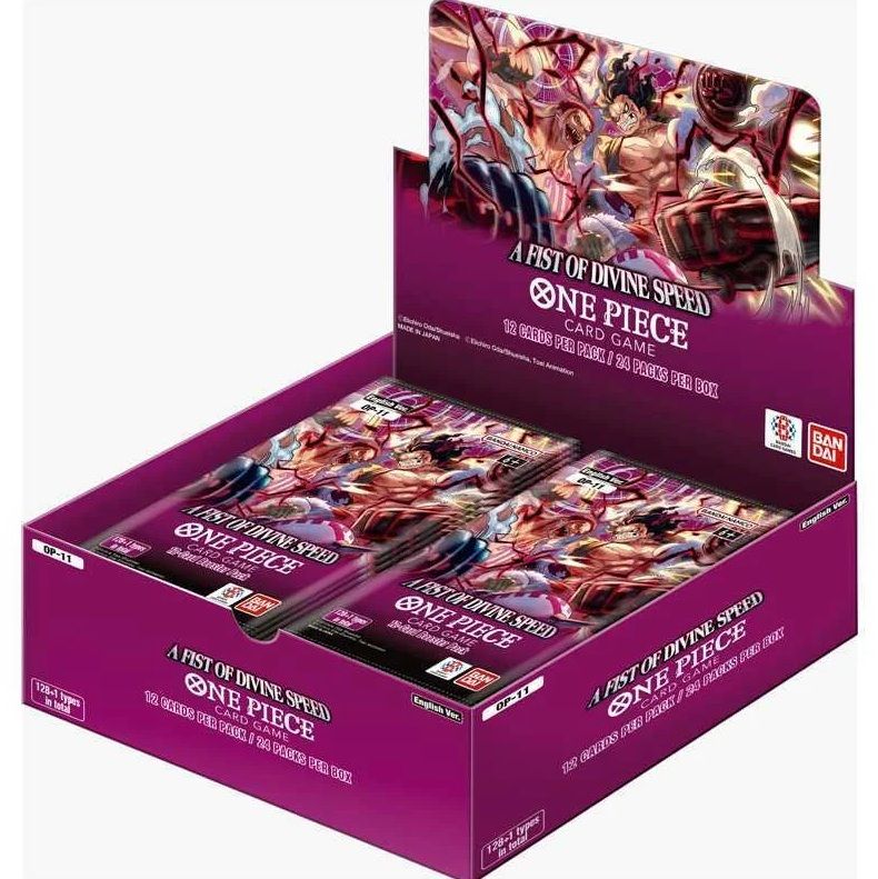 Caja de 24 sobres del juego de cartas One Piece Card Game OP-11 a Fist Of Divine Speed . Idioma en inglés. ver menos