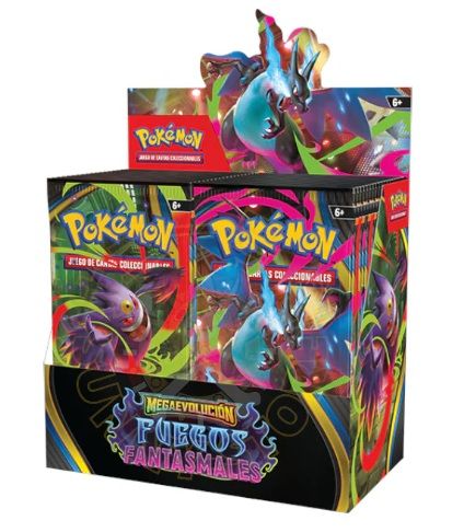 Caja de sobres de Pokémon de la colección Megaevolución Fuegos Fantasmanles, idioma en castellano. ver menos