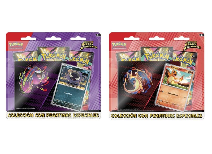 En esta colección, encontrarás a Charmander o a Gastly en forma de carta holográfica de promoción, así como una hoja con pegatinas especiales de Charmander y Mega-Charizard Y o de Gastly y Mega-Gengar. Y, por si esto fuera poco, ¡descubre aún más Pokémon en los tres sobres de mejora de la megaincreíble expansión Megaevolución-Héroes Ascendentes!