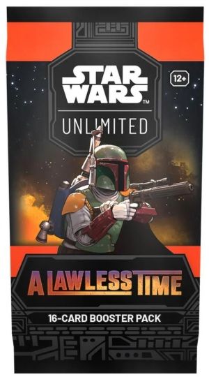 Cada sobre de Star Wars Unlimited A Lawless Time incluye: 16 cartas aleatorias de A Lawless Time con al menos una carta rara o legendaria. En cada sobre se garantiza una carta de base, una carta de líder y una carta foil de cualquier rareza.