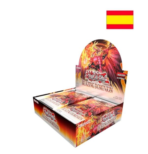 Display con 24 Booster Boxes de la colección Blazing Dominion en idioma español para Venta al por mayor y distribución. Cada Booster Box incluye 24 sobres de la serie TCG (9 cartas por sobre) con la nueva expansión competitiva de Yu‑Gi‑Oh!,