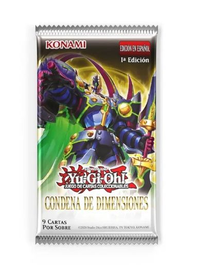 Sobre de la colección Doom of Dimensions del juego de cartas de Yu-Gi-Oh! En español.