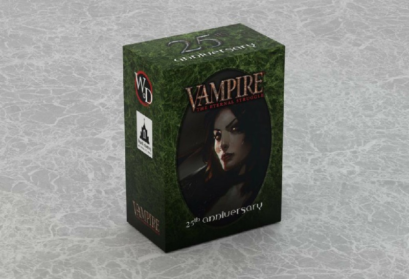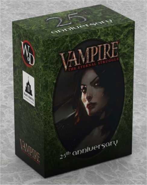 El producto del 25º aniversario de Vampire: The Eternal Struggle contiene: un mazo preconstruido de 100 cartas, uno de los arquetipos de mazo más clásicos del juego, 18 cartas icónicas adicionales, reimpresiones de todas las épocas de la historia del juego, dos copias de un poderoso vampiro nuevo para esta colección.