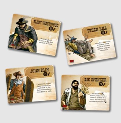 Contenido: 9 dados, 36 personajes, 18 roles, 17 cartas de Resumen, 1 carta de Fantasma, 29 cartas pequeñas, 3 separadores de cartas, 10 fichas de Flecha, 44 fichas de Bala, 7 fichas de Fantasma, 15 fichas de Herida de duelo, 3 reglamentos, 3 cartas de reglas.
