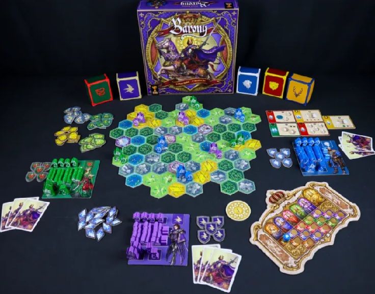 En Barony Royal Edition Deluxe, te conviertes en un barón ambicioso luchando por expandir su dominio sobre el reino. Tu objetivo es claro: ascender en la jerarquía nobiliaria y reclamar el trono como el nuevo soberano.