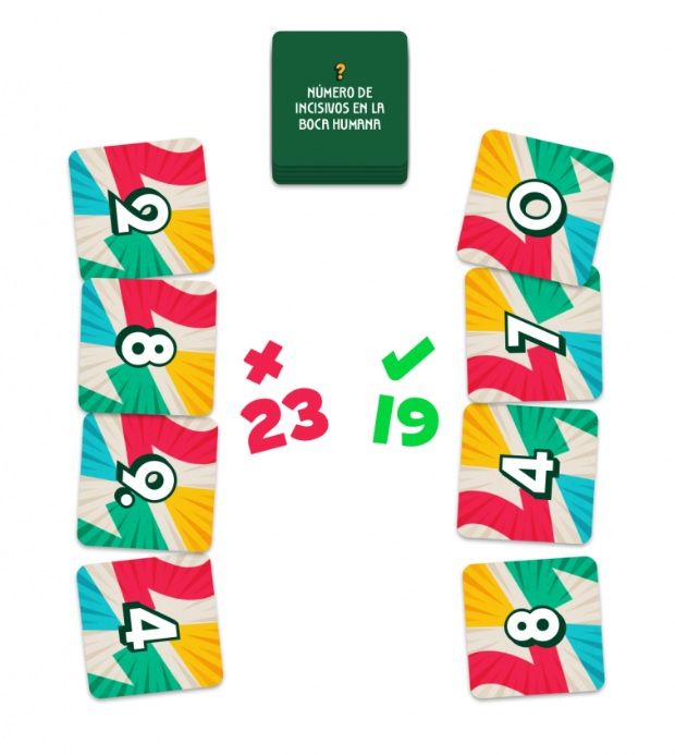 ¡Ejercita tu memoria y tus conocimientos de trivialidades para llevar a tu equipo a 21! En este juego de apuestas a ciegas, las cartas de preguntas tienen una respuesta oculta entre el 0 y el 10. Roba una carta, estima la respuesta numerada, muéstrala a tus oponentes y luego decide si tu equipo se quedará con esta carta para mejorar sus posibilidades de acercarse a 21. Lleva un registro del valor estimado de tus cartas y del valor real de la mano de tu oponente al decidir pedir carta o pasar. ¿Te pasarás y romperás o te clasificarás como el Experto Definitivo de Preguntas?