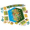 Contenido: 29 Hexágonos de terreno, 8 Piezas de marco, 27 Fichas numeradas, 4 Tablillas de tribus, 44 Fichas de desarrollo, 2 Tarjetas de beneficio, 4 Tarjetas de ayuda, 100 Cartas de materia prima, 36 Cartas de mercancía, 20 Cartas de desarrollo, 68 Figuritas, 16 Figuras de maleza, 1 Figura de ladrón, 2 Dados, 3 Portacartas, 5 Bolsitas, 1 Reglamento, 1 Manual.