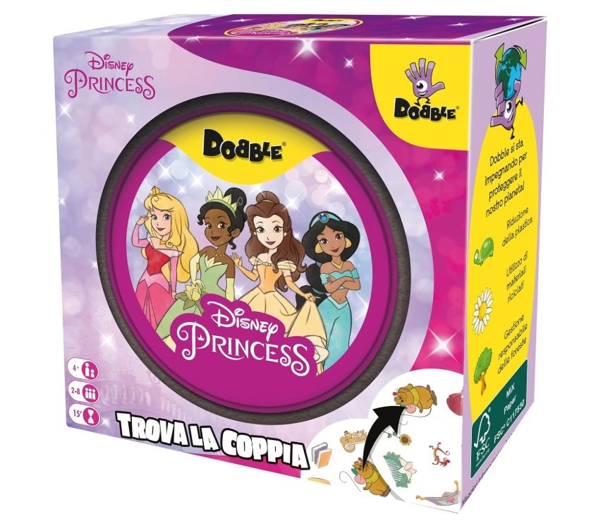 Dobble Disney Princess es un juego de cartas para toda la familia en el que prima la observación y los reflejos. ¡Lo pasaréis en grande! Disfruta de esta nueva versión del juego de siempre, pero esta vez buscando y divirtiéndoos con las princesas del universo Disney.