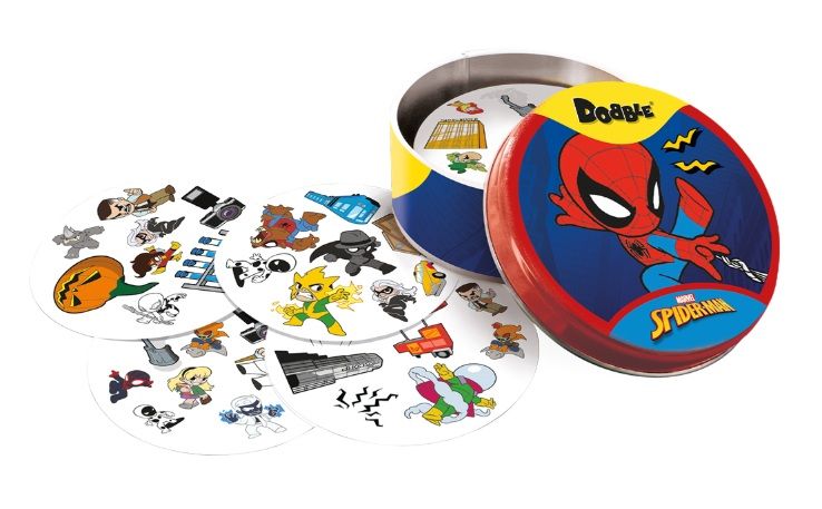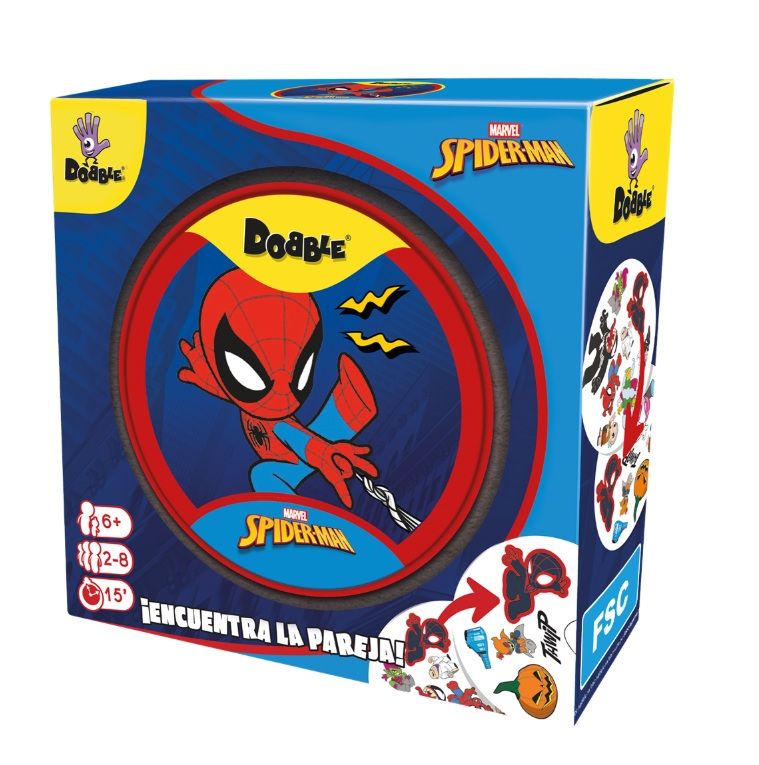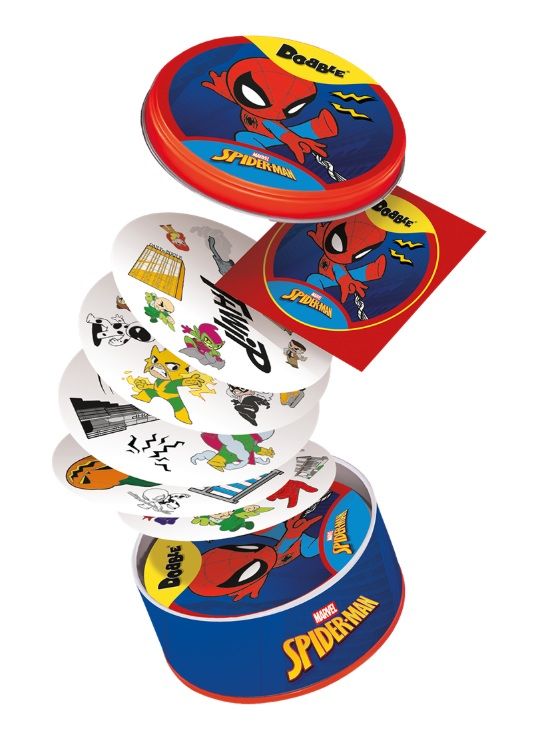 Dobble Spiderman es un juego de cartas en el que tu amigo y vecino favorito es el protagonista del clásico Dobble.