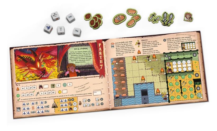 Tira los dados y traza tu senda para evitar a trolls, luchar contra trasgos, resolver acertijos y narrar la mejor conclusión para cada capítulo de tu Guía de aventura personal. ¡Gana el hobbit que consiga más puntos!
