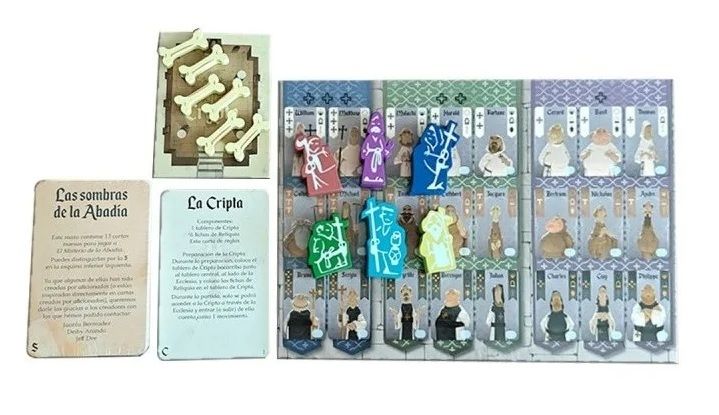 - Mini expansión La Cripta compuesta por 1 Tablero de Cripta, 6 Fichas de Reliquia y 1 Carta de Reglas.