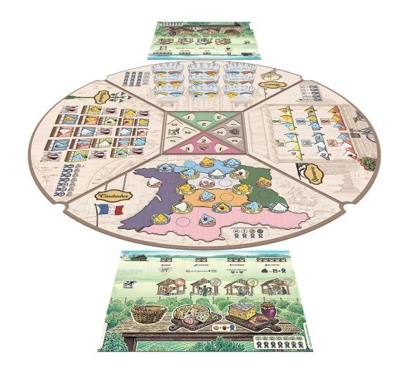 Los queseros compiten por dirigir la quesería más próspera de Francia en el juego de mesa Fromage.