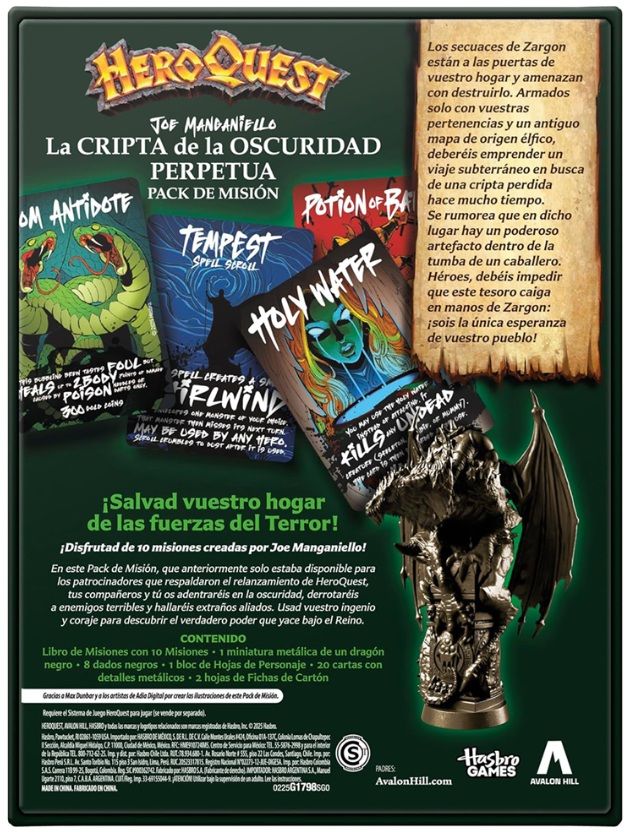 HeroQuest La Cripta de la Oscuridad Perpetua es una expansión para el juego de mesa HeroQuest que te presenta la temible presencia de los secuaces de Zargon, unas malvadas criaturas que, una vez más, están tocando a tu puerta y amenazan el lugar al que llamas tu hogar.