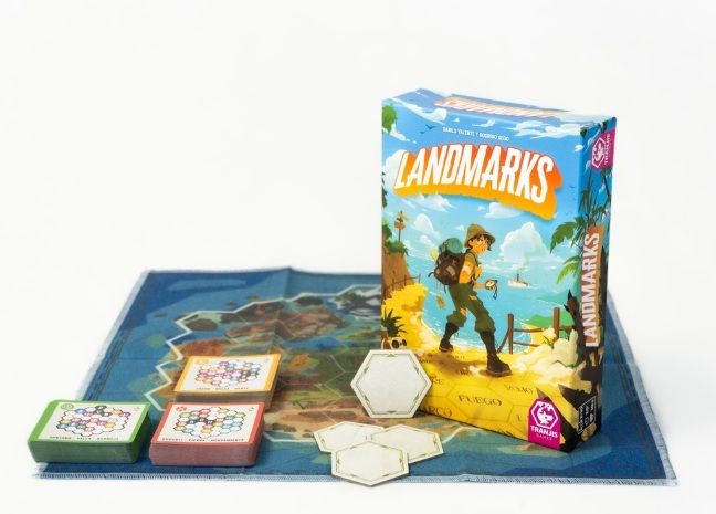Con un tablero modular que cambia en cada partida, Landmarks ofrece una rejugabilidad infinita y se adapta perfectamente tanto a grupos pequeños como a grandes reuniones. ¿Seréis capaces de interpretar las pistas del Guía para encontrar el camino a la civilización o acabaréis perdidos en la espesura de la selva?