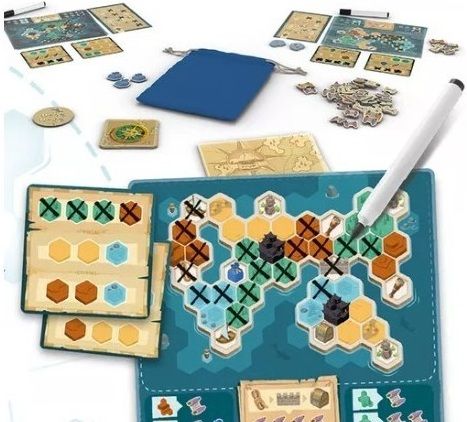 Cada jugador comienza con su propio mapa de una isla dividida en varias áreas de colores. En cada turno, tachan los símbolos disponibles de una de las dos cartas que tienen en la mano, comprueban los campos coincidentes en su mapa y luego pasan las cartas a su vecino. Al explorar ciertas áreas, alcanzar objetivos en la isla, saquear tesoros y progresar en su propio árbol de sabiduría, reúnen valiosos pergaminos. Llegar a un barco les permite trasladarse a una nueva isla llena de nuevas oportunidades.