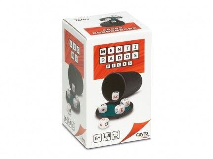 Mentidados un juego compuesto por un cubilete, 5 dados de póker y una base para que al mover los dados tapados por el cubilete, estos no cambien de cara. Haz una combinación con los dados (trió, ful, etc) y pásalo al siguiente jugador, este podrá creérselo ó no.