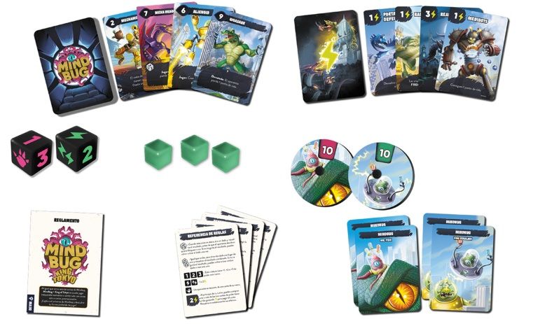 ¡Pero esta vez los controlas tú! A diferencia de cualquier otra caja de Mindbug, esta edición incluye un dado especial que desata efectos de ataque aleatorios; y también como novedad, gastarás energía para comprar cartas de poder únicas que pueden cambiar el rumbo de la partida.