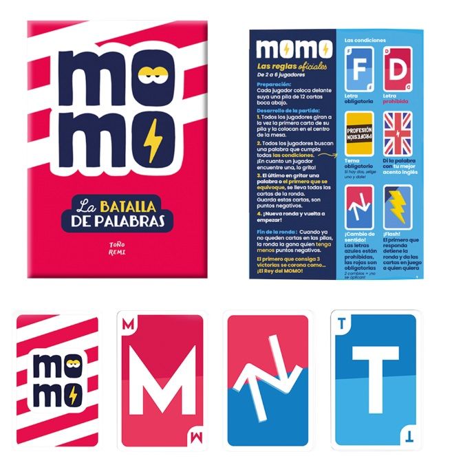 Momo es un juego de cartas fácil de transportar, rápido de explicar, muy rejugable gracias a sus variantes y modos de juego, y garantiza diversión y rapidez en cada partida.