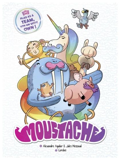 ¡Un juego de bazas en el que los equipos cambian cada ronda y se añaden nuevas reglas sobre la marcha! Moustache combina estrategia, sorpresas y giros inesperados en un ambiente alegremente competitivo.