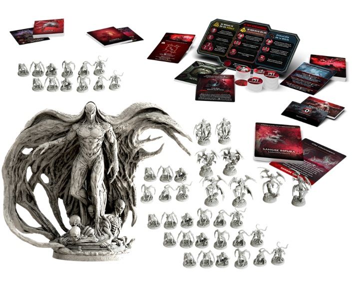 Contenido: 45 miniaturas de Sangrívoros de gran calidad, Más de 100 cartas, Más de 30 fichas.