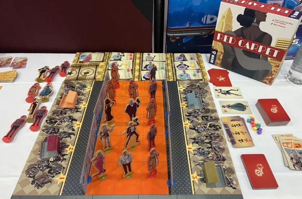 Obra de Anna Lucini, Pau Moré y Eloi Pujadas e ilustrado por Albert Monteys, en Red Carpet de 2 a 4 jugadores interpretaréis a un fotógrafo que busca captar los mejores retratos de las celebridades que llegan en limusina y desfilan por la alfombra roja hacia la gala de premios. Moveréis la cámara por los laterales, ajustando ángulos y llamando a las celebridades para conseguir los mejores planos, que os recompensarán con más puntos. ¡Quien tenga más puntos después de 5 rondas, será aclamado como el mejor fotógrafo!